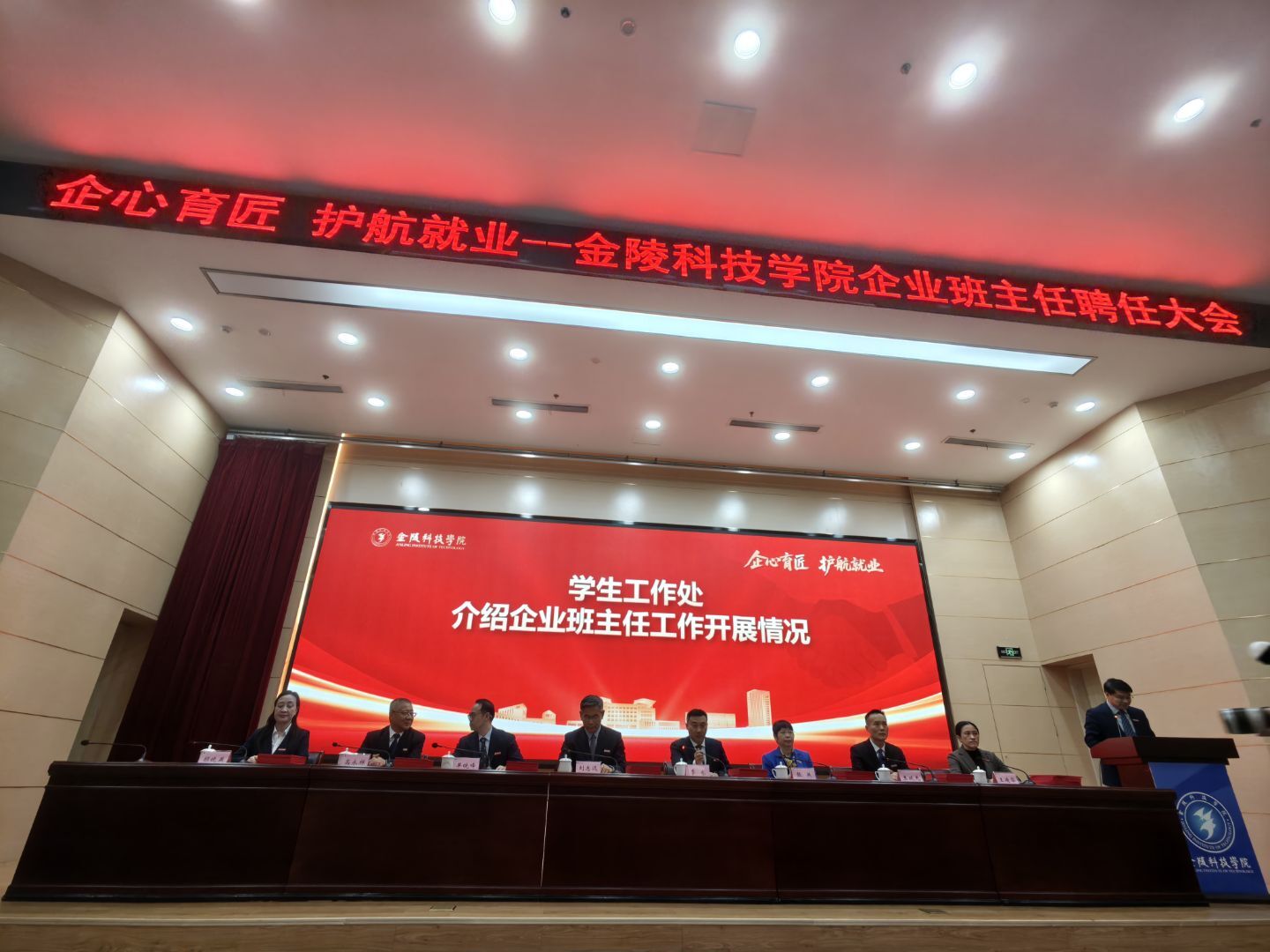 2025年11月26日,金陵科技学院企业班主任聘任大会在金陵科技学院科技楼报告厅举行。江苏k8凯发国际科技(集团)股份有限公司唐佩、徐敏博、罗涛、孙文雅同志受聘金陵科技学院软件学院企业班主任,并随后在学院组织下,参观金陵科技学院科创空间,参加学院研讨会。